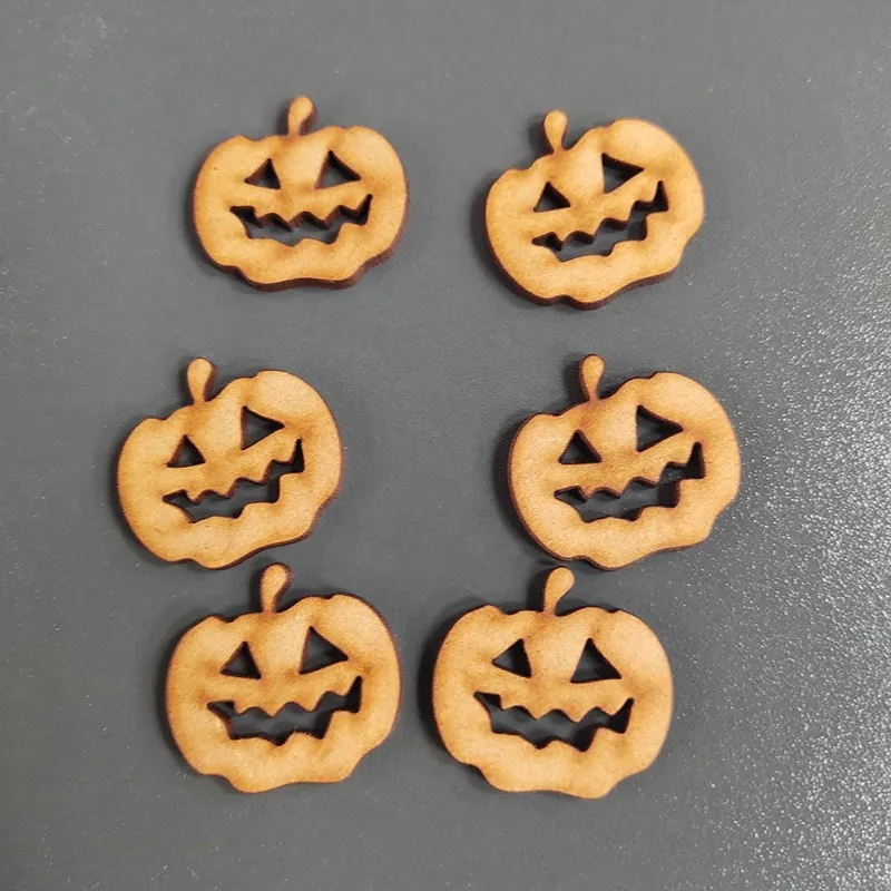 6 piezas en MDF de 3 milímetros corte laser medidas por pieza 3.3 x 3.6 cms