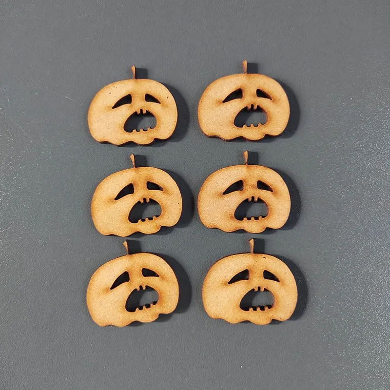 6 piezas en MDF de 3 milímetros corte laser medidas por pieza 3.3 x 3.6 cms