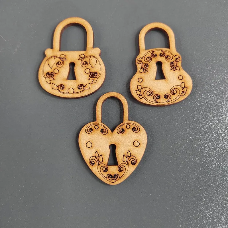 3 piezas en MDF de 3 milimetros corte laser medidas por pieza 4.4 x 6 cms