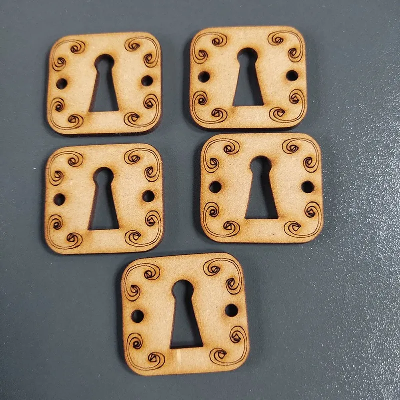 5 piezas en MDF de 3 milimetros corte laser medidas por pieza 3.5 x 3.8 cms